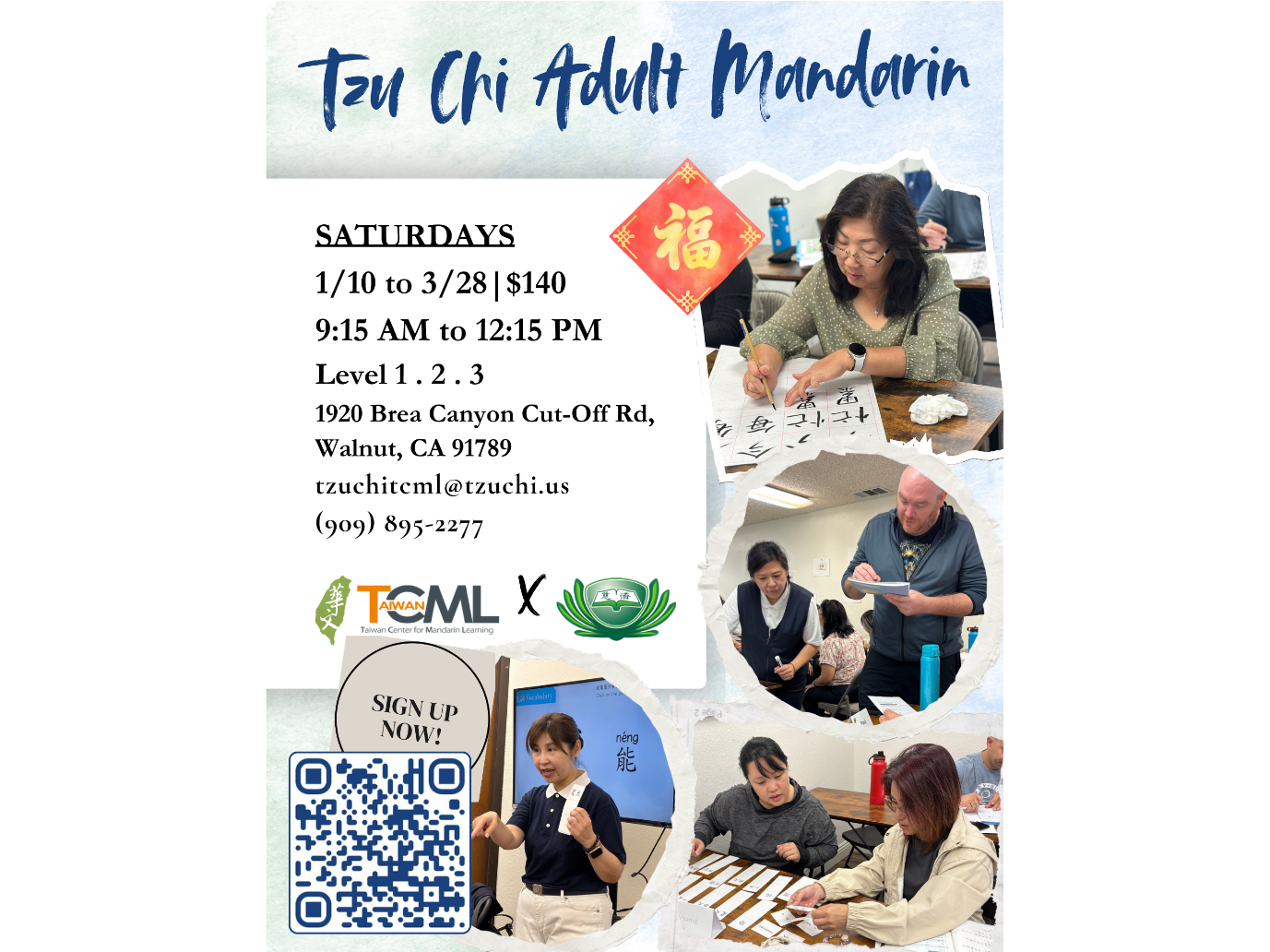 - Location: Tzu Chi Academy (1920 Brea Canyon Cut-off Rd, Walnut, CA 91789)